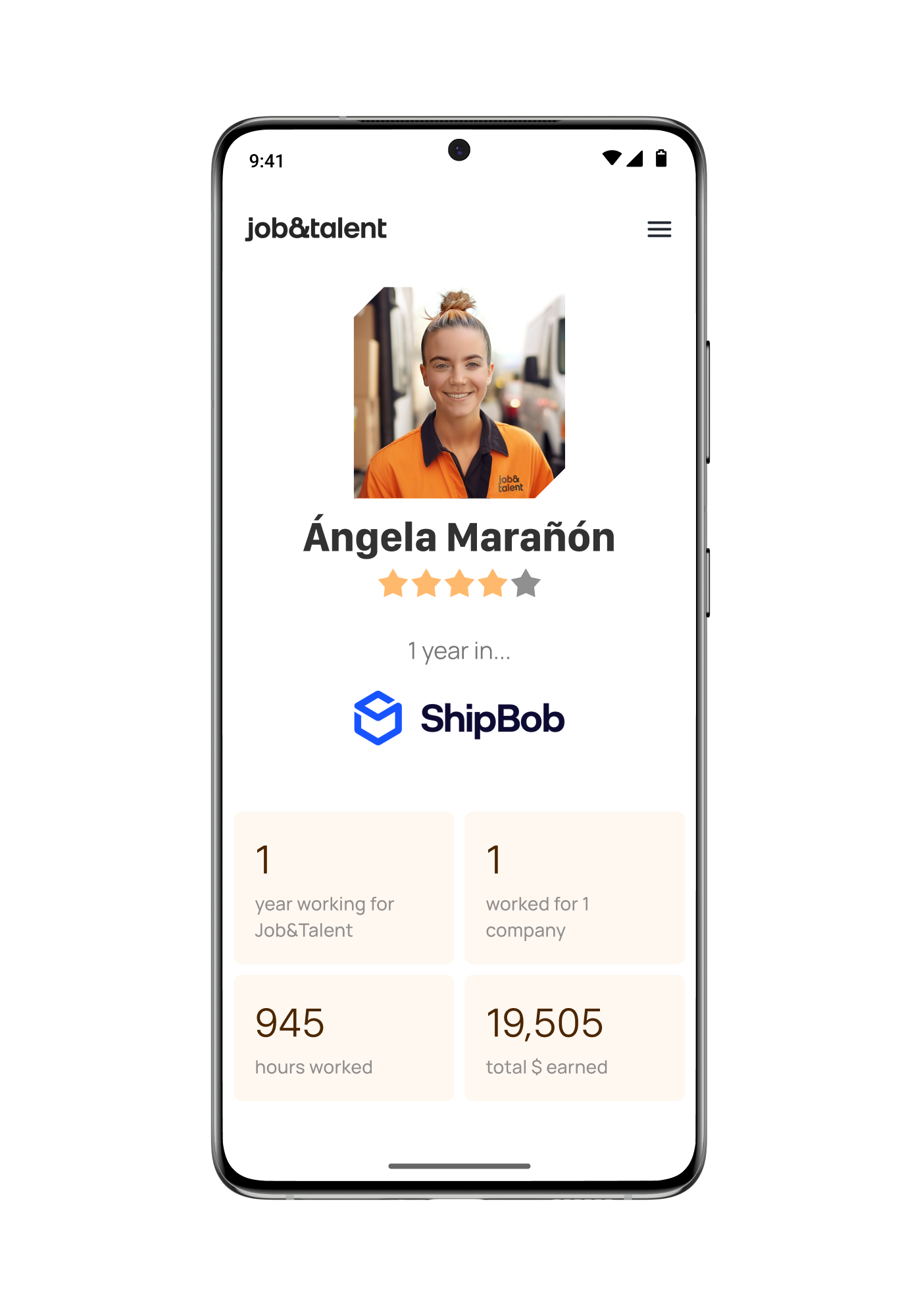 A App da Job&Talent permite comunicar em tempo real, gerir os turnos e assiduidade, bem como receber avaliações e fornecer feedback sobre os turnos.