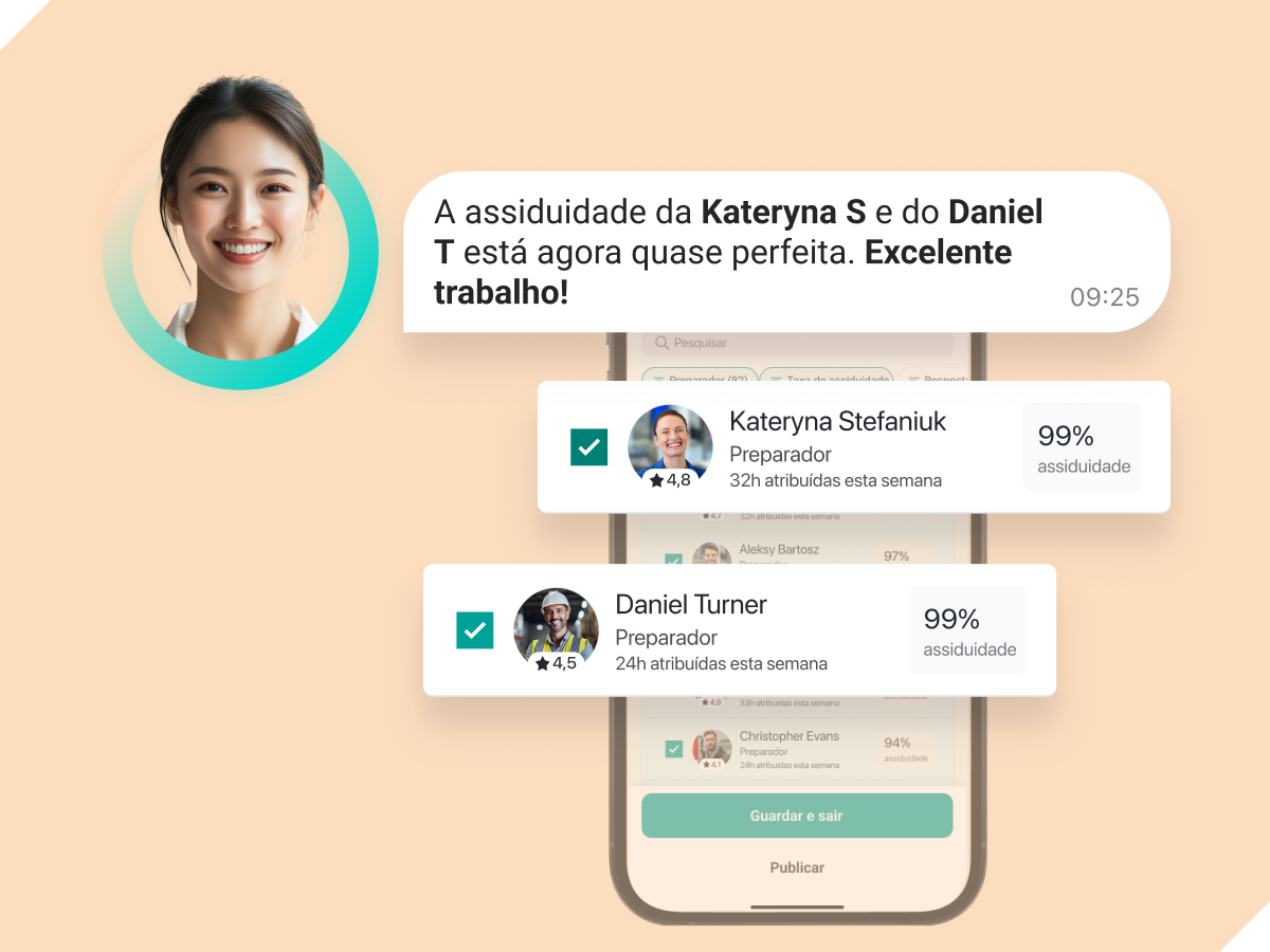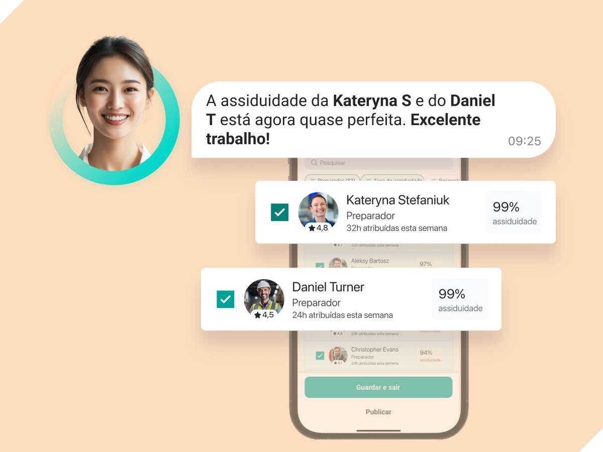 Com a equipa de IA da Job&Talent, aplicamos inteligência e automação a toda a gestão da força de trabalho — desde a contratação até ao desempenho — ajudando as empresas a escalar, reduzir custos e aumentar a produtividade.