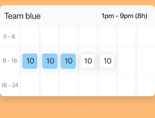 Pode planear e atribuir turnos aos trabalhadores rapidamente por meio da interface intuitiva da plataforma. Utilize dados como pontuações de assiduidade, classificações de desempenho e disponibilidade para tomar decisões informadas. Isto garante que as pessoas certas estão nas funções certas, melhorando a produtividade geral e reduzindo os conflitos de agendamento.