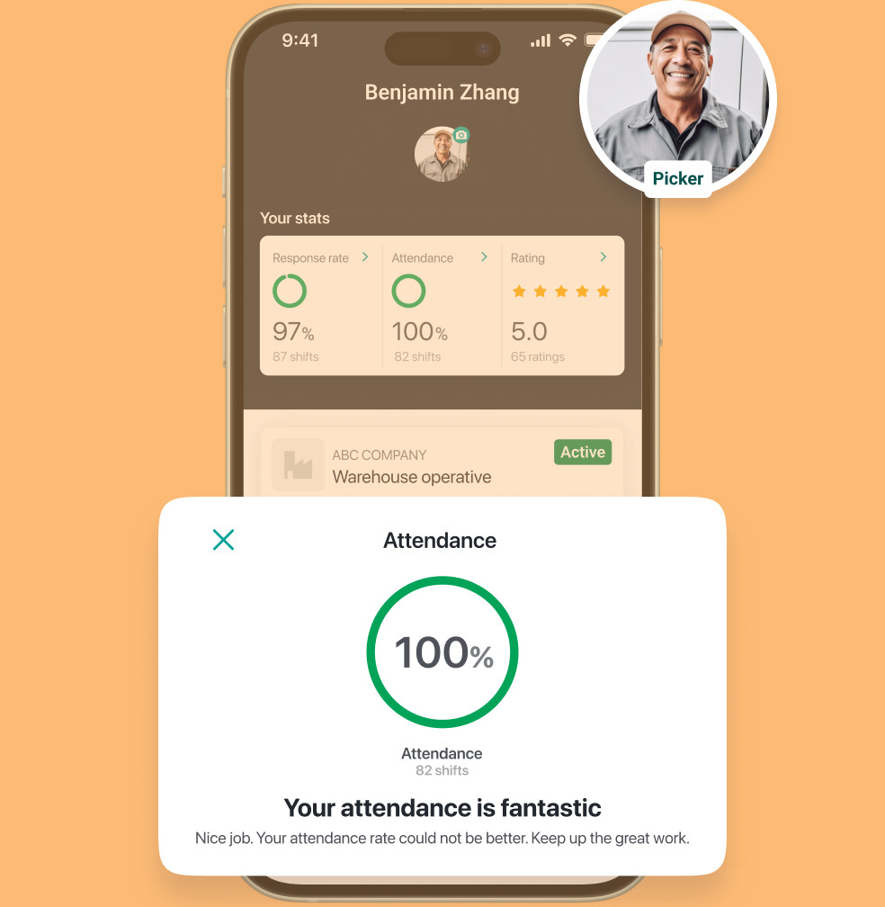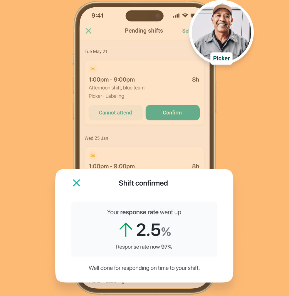 Obtenha acesso à nossa plataforma tecnológica integrada como parte do nosso serviço. Composta por duas aplicações - uma para empresas e outra para trabalhadores -, esta solução sincronizada constitui uma combinação poderosa que aumenta a fiabilidade e a qualidade da sua força de trabalho.