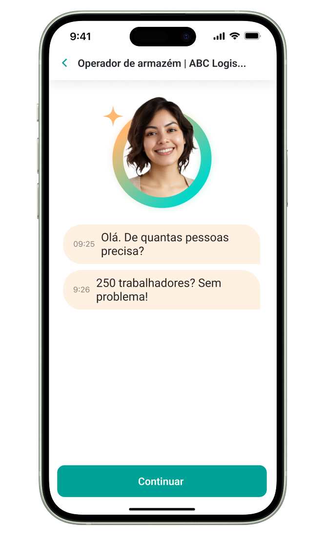A Job&Talent permite-lhe recrutar, em poucas horas, equipas de trabalhadores fiáveis e de qualidade. Com a Clara, a nossa agente de IA, o recrutamento torna-se mais ágil e escalável do que nunca.